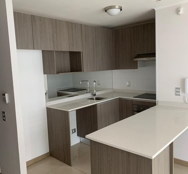 Departamento consta de 2 dormitorios, 2 baños ( 1 en suite ), living comedor, cocina americana, terraza, termoeléctrico y con cuarto de lavado .
