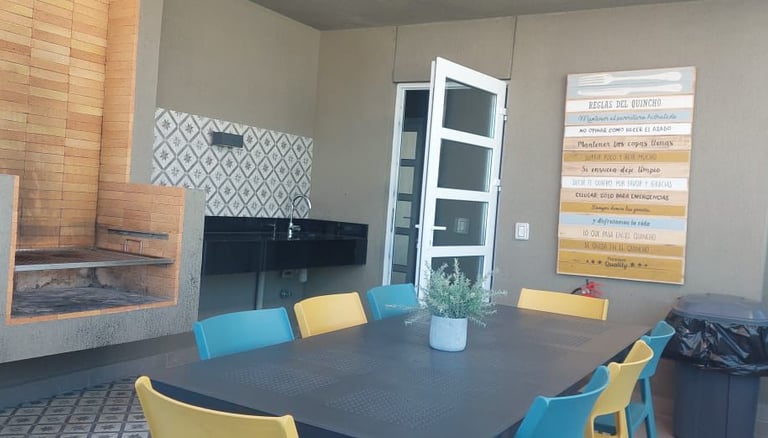 Casa con 4 dormitorios, 1 baño, living amplio, cocina tradicional amoblada, antejardín, patio techado, quincho, terraza, 203 metros cuadrados de superficie, 90 metros cuadrados construidos, no se paga contribuciones.